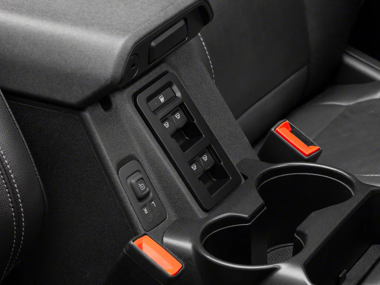 Application. These RedRock Center Console Window Switch Trim Bezels; Matte Black are designed to fit 2021-2025 Bronco 4-Door models. Sold as a two piece set.