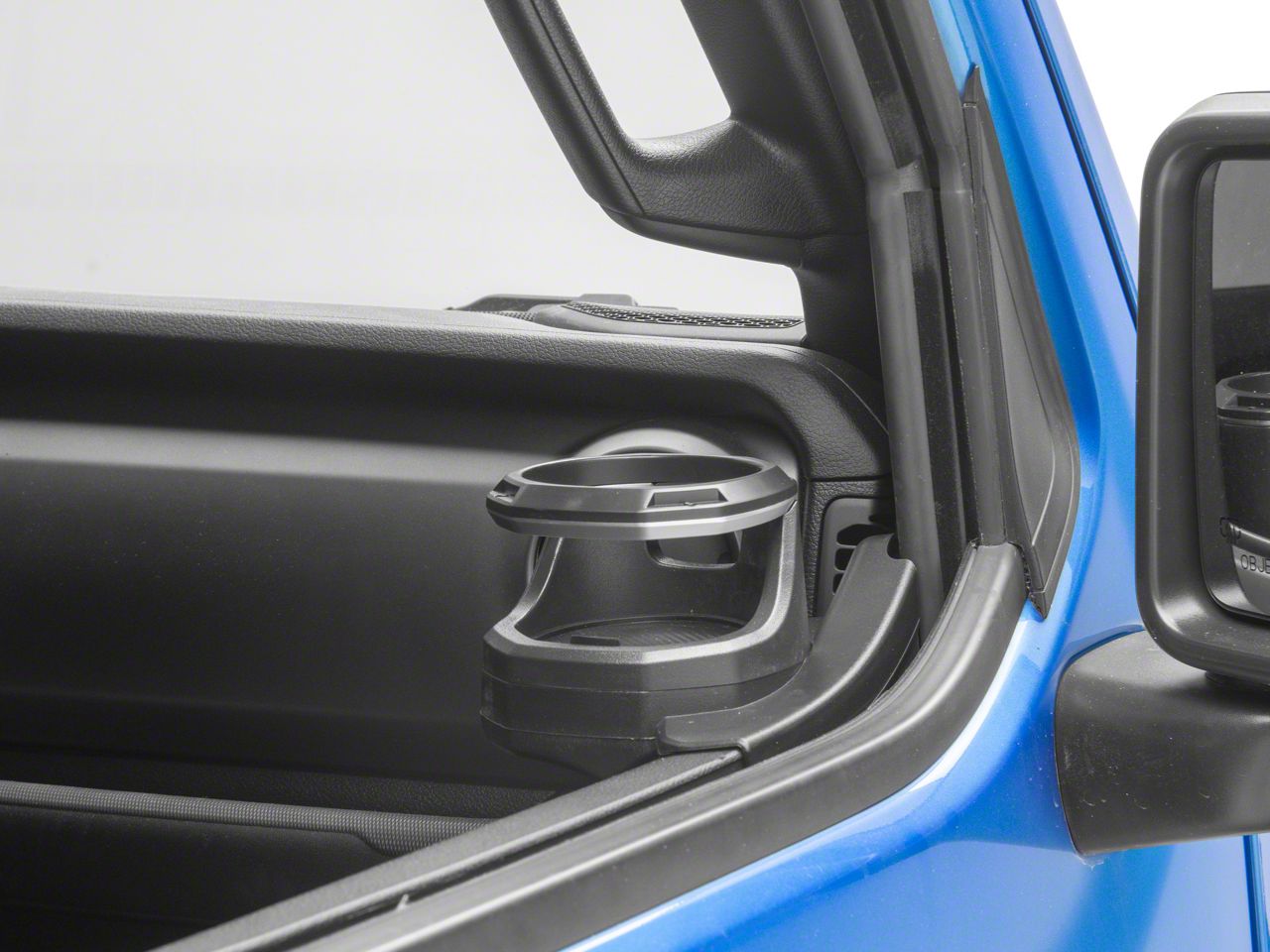 Door Panel Cup Holder. If you are tired of fighting over the center console cup holder, this Passenger Door Panel RedRock Cup Holder is for you. This Cup Holder is ideal for the Gladiator JT owner who always has someone riding shotgun.