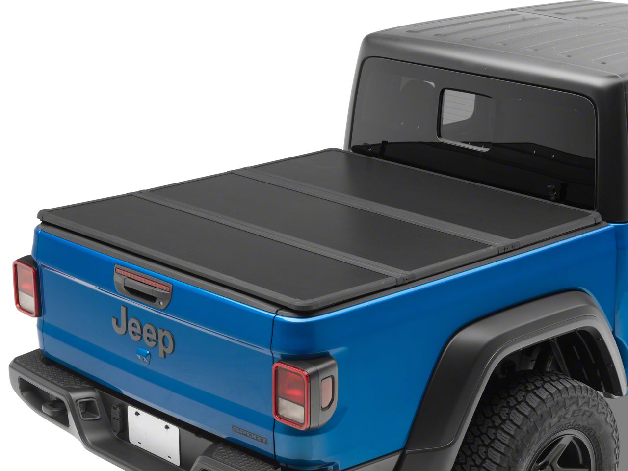Tri-Fold Design. Add a much sleeker, cleaner appearance to your Jeep Gladiator JT all while discreetly hiding cargo and tools in the bed by installing a RedRock Hard Tri-Fold Tonneau Bed Cover. This RedRock Bed Cover features a convenient tri-fold design that can fold up to easily access your bed, or when hauling larger items. As an added bonus, you may even see up to a 10% increase in fuel mileage because of its aerodynamic design.