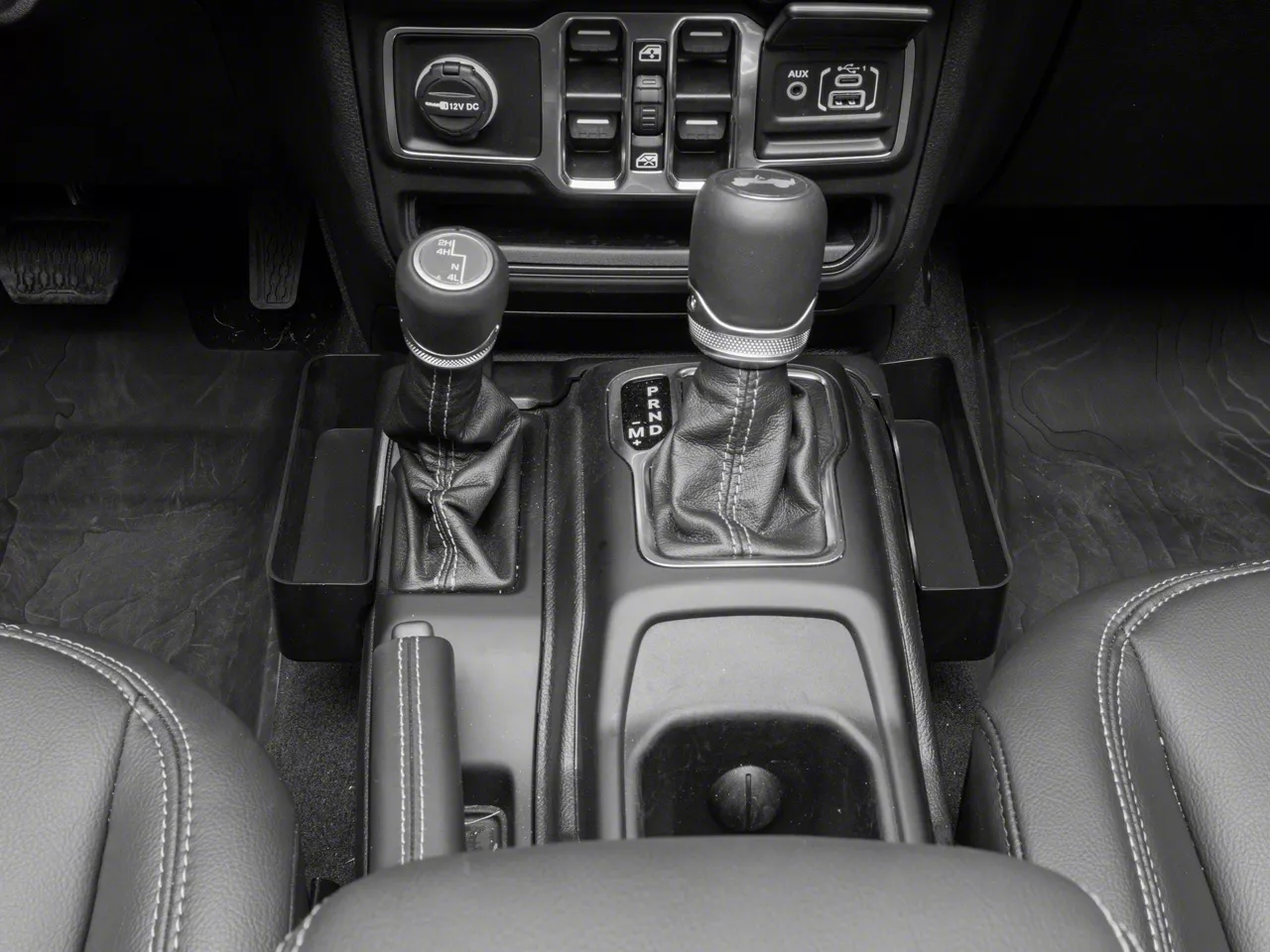 Organized Storage. The RedRock Center Console Storage Organizer creates more usable storage space in your Wrangler's center console for small items. The Organizer Tray features a useful, 2-compartment design (driver side / passenger side) to separate items, such as your sunglasses, smartphone, loose change and more.