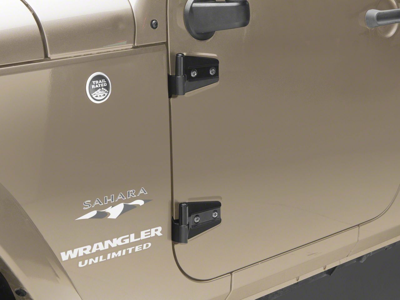 OE Style Door Hinge Set. If your 4-door 2007-2018 Jeep Wrangler's factory door hinges are oxidized, damaged or just worn out, replace them with a set from RedRock. These RedRock Door Hinges are designed to be direct fit OE style replacements.