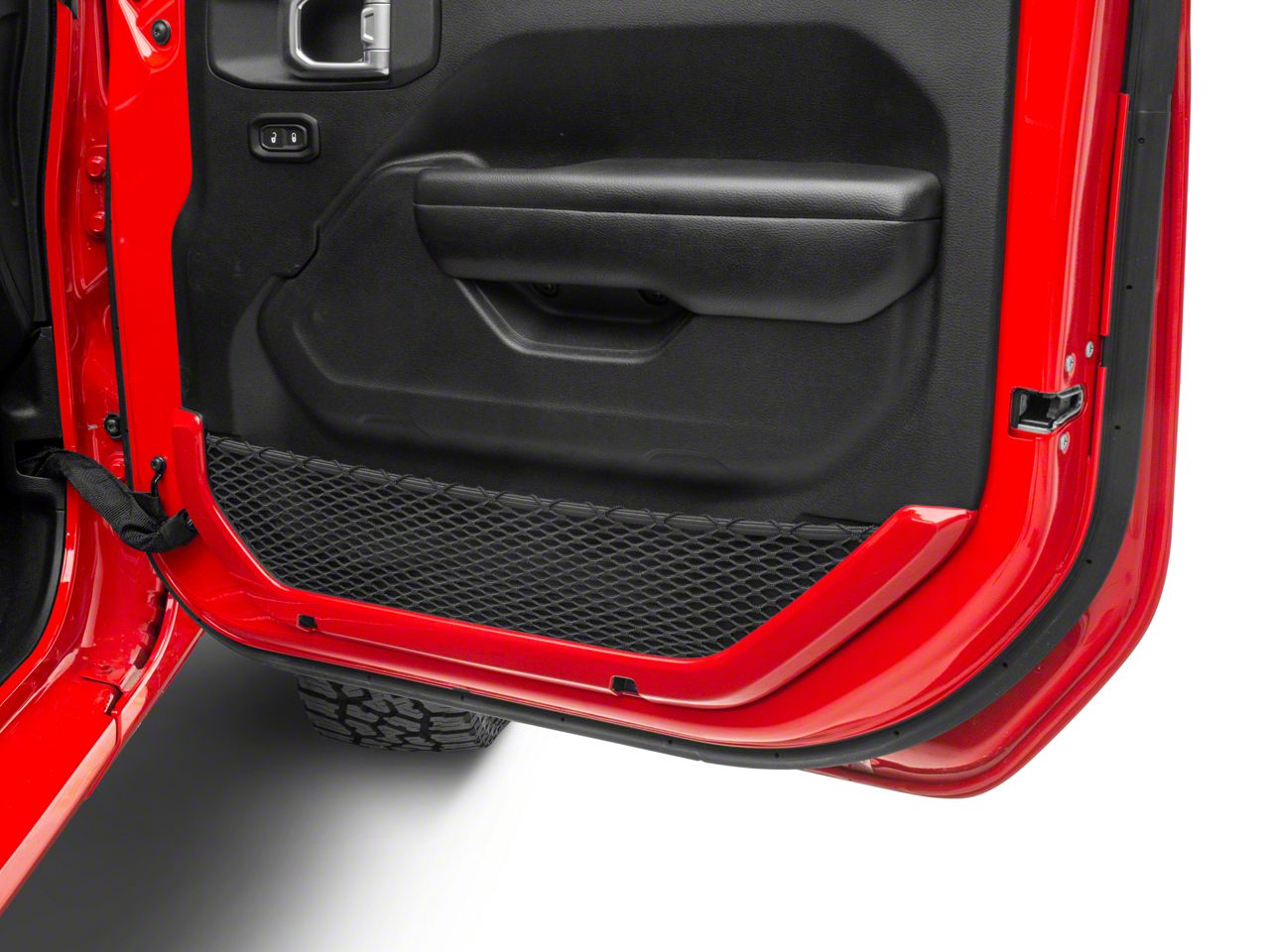 Custom Interior Styling. Add impressive custom show car styling to your JL Wrangler's interior with a set of RedRock Door Storage Net Trim Accents. These great looking, red Trim Accents are an inexpensive way to upgrade the appearance of your interior and they perfectly match RedRock's complete line of other red interior styling parts.