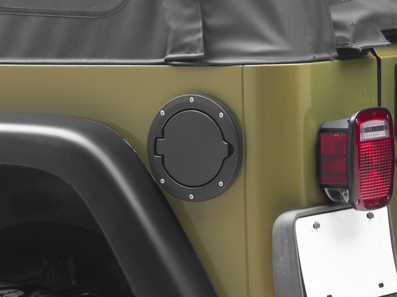 Rugged Styling. Hide your TJ Wrangler's exposed plastic factory fuel cap by installing a RedRock Fuel Door Cover. This great-looking Fuel Door Cover will add an extra level of customization to your TJ, bringing out its rugged off-road styling.