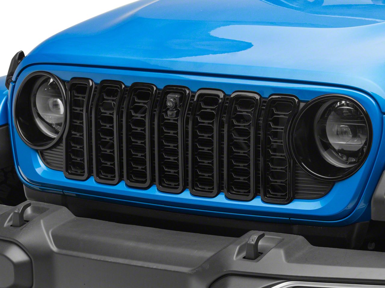 Custom Styling. Change up the exterior styling of your JL Rubicon or JL Sahara with a set of gloss black RedRock Grille and Headlight Inserts. Completed in a durable black finish, these Inserts will add a custom appearance to the front end of your 2024-2026 Jeep Wrangler JL Rubicon or JL Sahara.