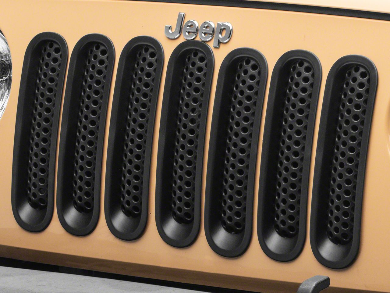 Application. These RedRock Mesh Grille Inserts; Matte Black are designed to fit 2007-2018 Jeep Wrangler JK models.