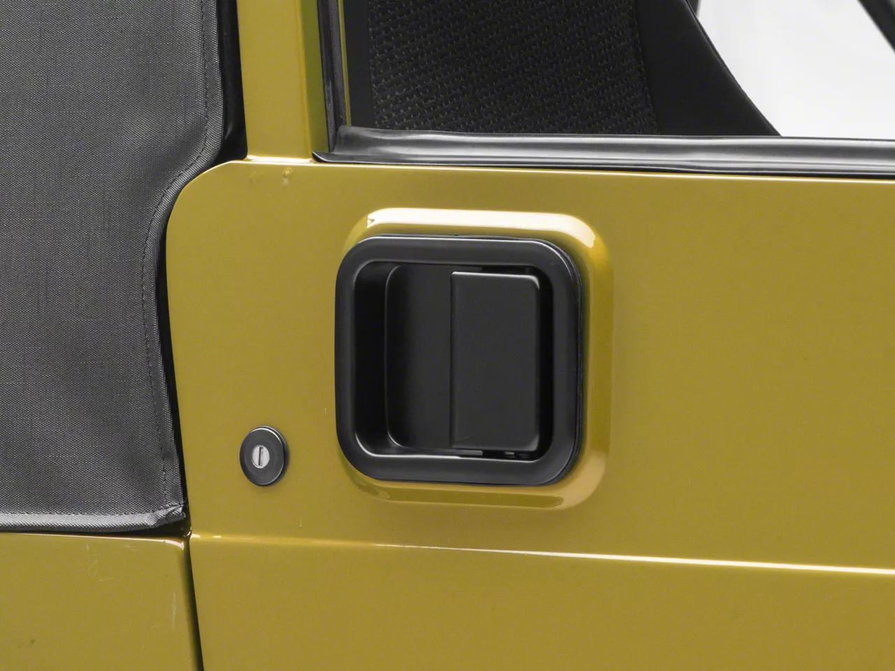 Application. This RedRock Paddle Door Handle; Passenger Side; Black is designed to fit 1976-2006 Jeep CJ7, Wrangler YJ and TJ models. Sold individually.