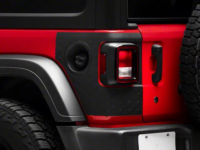 Protects Rear Corners From Damage. Prevent dings and scratches from trail hazards and everyday wear and tear with a pair RedRock Rear Corner Guards. RedRock designed their Rear Corner Guards to protect the corners of your quarter panels from damage. These Rear Corner Guards are also a great way to cover up any existing damage all while adding a bold, rugged appearance to your Wrangler's exterior with their diamond plate design.