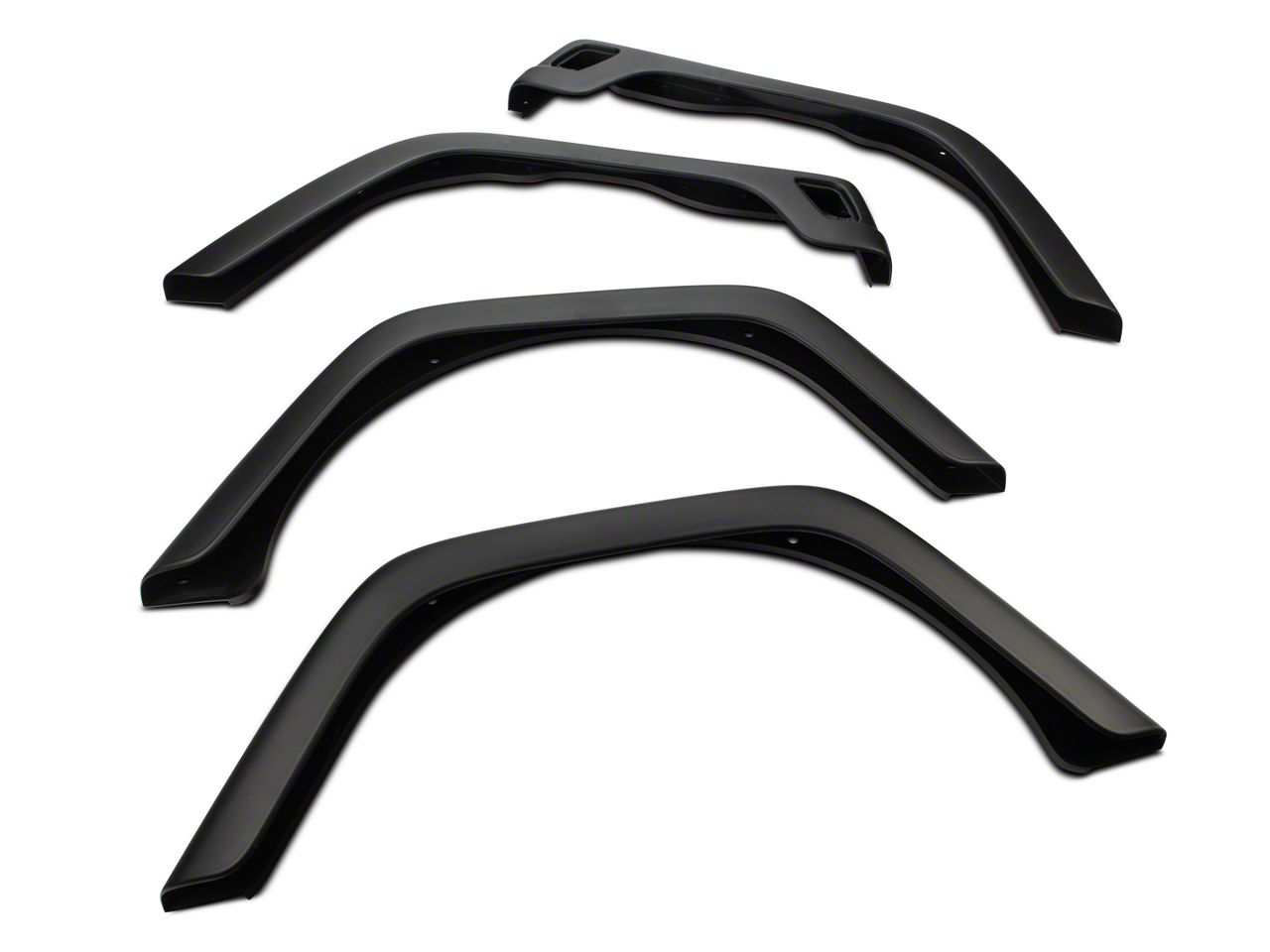 Design. This Fender Flare extension fits the passenger front side and is made to replicate the factory design. It's often the choice of savvy Jeep owners who need to replace an extension, or those who want to add one altogether, but are looking for a choice that fits in with the classic Wrangler design. They're made from rugged, sturdy, crack-resistant thermoplastic that's virtually impossible to damage. The UV treatment protects these black matte pieces from cracking or fading in the sun.