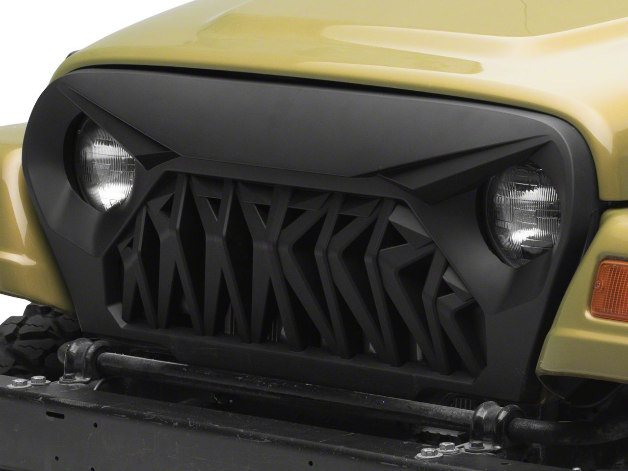 Angry Eye Styling. Add intimidating good looks to the front end of your Jeep Wrangler TJ by installing a RedRock Shark Grille Cover. Featuring an angry eye design with unique angular vertical bars, this RedRock Grille will transform the appearance of your Wrangler from a mild mannered daily driver into a mean off-road machine.