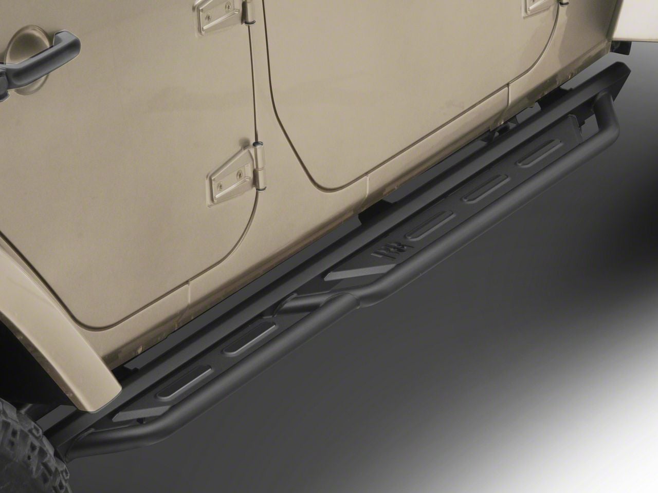 Function and Style. Installing a set of RedRock TC3 HD Rocker Steps will make getting in and out of your 2007-2018 Jeep Wrangler JK 4-Door much easier. These Side Steps not only provide easy entry, but they also give your rig a rugged off-road appearance. As an added bonus, these TC3 HD Rocker Steps can help to provide additional protection from both road and trail hazards.