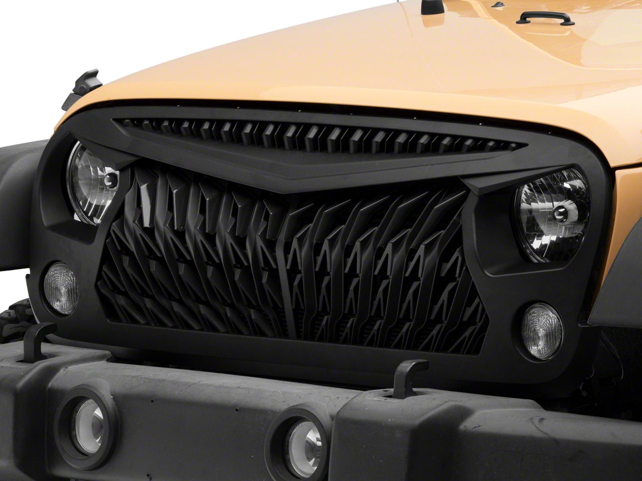 Angry Eye Styling. Add aggressive styling to the front end of your 2007-2018 Jeep Wrangler JK with RedRock's Torch Grille. Featuring an angry eye design with unique angular vertical bars, this Grille includes integrated amber LED running lights for a striking appearance. Designed to be installed in place of the factory grille, this RedRock Grille will transform the appearance of your Wrangler from a mild mannered daily driver into a mean off-road machine.