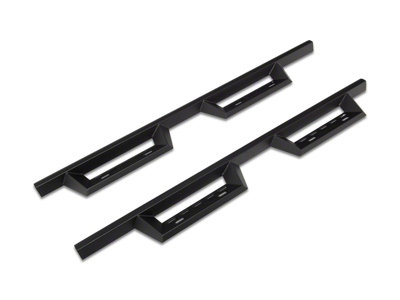 Rugged Steel Construction. RedRock manufactures their Running Boards to precise specifications from heavy duty steel for superior strength and rigidity. RedRock then completes their Running Boards in a high-grade, textured black powder coat finish for long lasting corrosion resistance and rugged good looks.