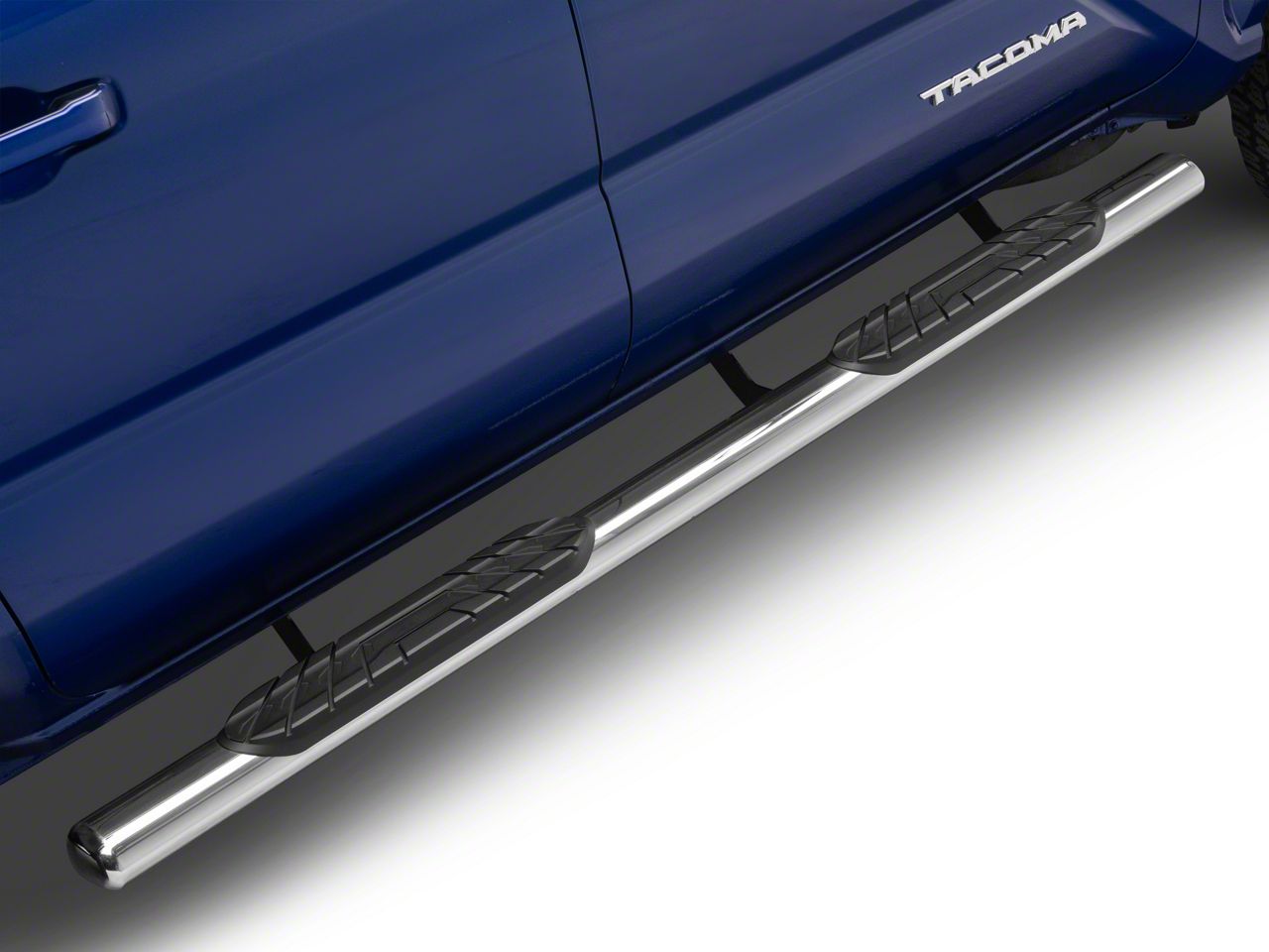 Application. These RedRock 4-Inch Oval Straight End Side Step Bars; Stainless Steel are designed to fit 2024-2026 Toyota Tacoma Double Cab models. Driver and passenger side are included.