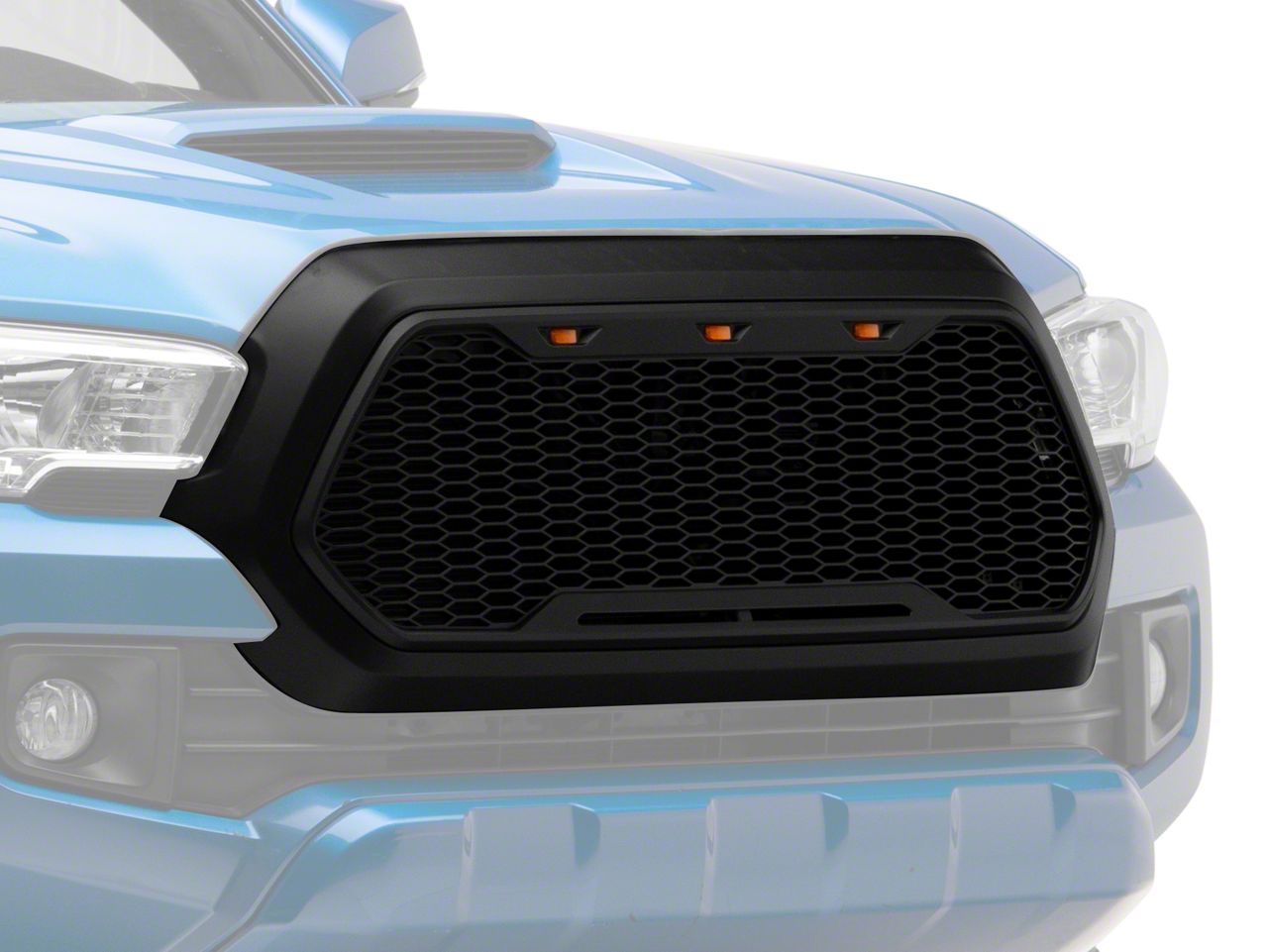 LED Accent Lighting. This Baja Style Grille also includes three high mount amber LED accent lights. These LED accent lights come with a wiring harness that simply splices into your Tacoma's existing factory headlight harness. The LEDs will then automatically activate in conjunction with your running lights. The eye-catching LEDs not only look great, but will also make your Tacoma more visible to other drivers at night and in poor weather conditions.