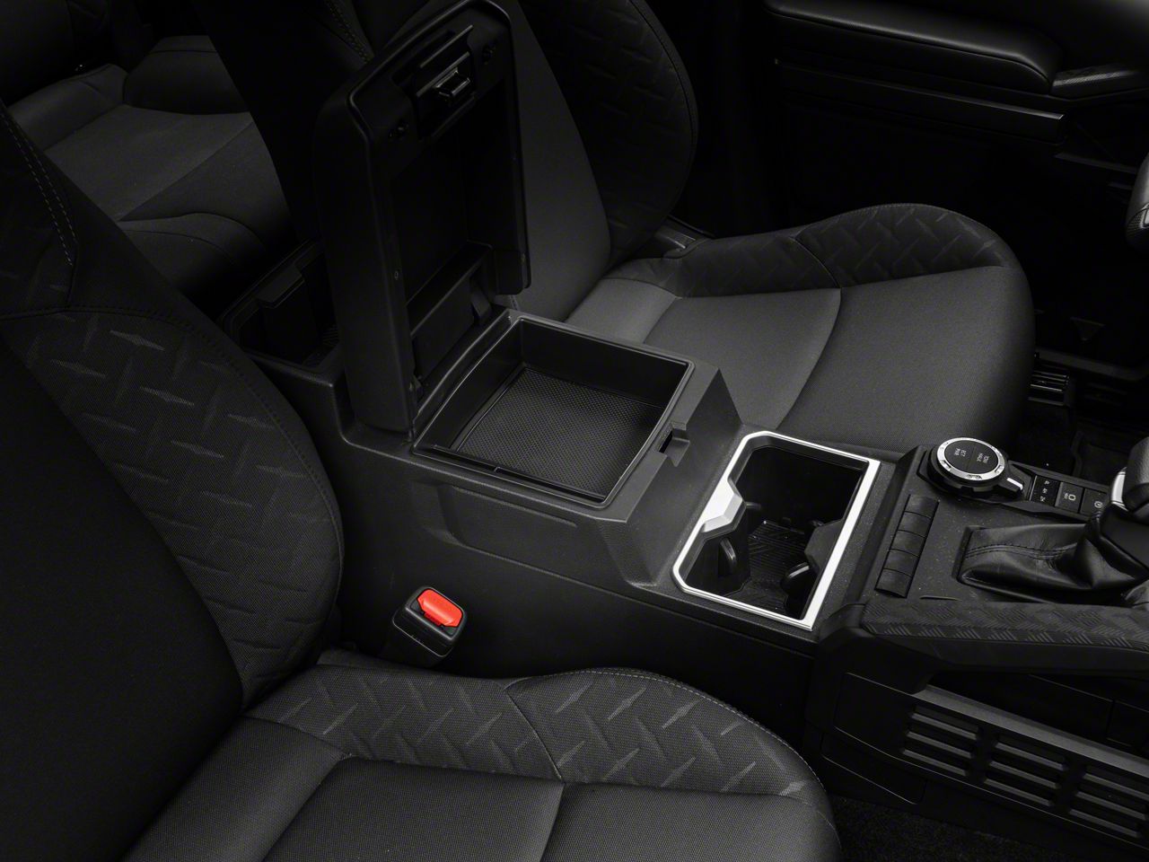 OEM Appearance. RedRock manufactures their Center Console Storage Tray from an injection-molded ABS material for excellent durability. This Storage Tray features a matte black finish for an OEM appearance that compliments your factory interior nicely. A removable silicone insert is included.