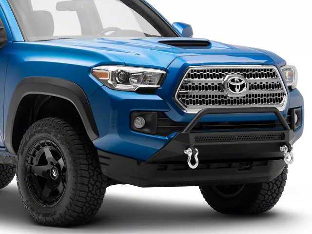 Application. This RedRock Stubby Front Bumper with Over-Rider Hoop is designed to fit 2016-2023 Toyota Tacoma models.