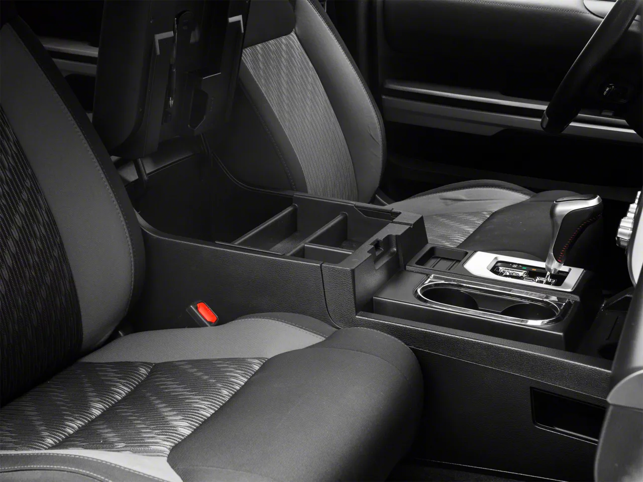 Organized Storage. The RedRock Center Console Organizer Tray creates more usable storage space in your Tundra's center console, making it perfect for small items. The Organizer Tray features a useful, 3-compartment design to separate items, such as your sunglasses, smartphone, loose change and more.