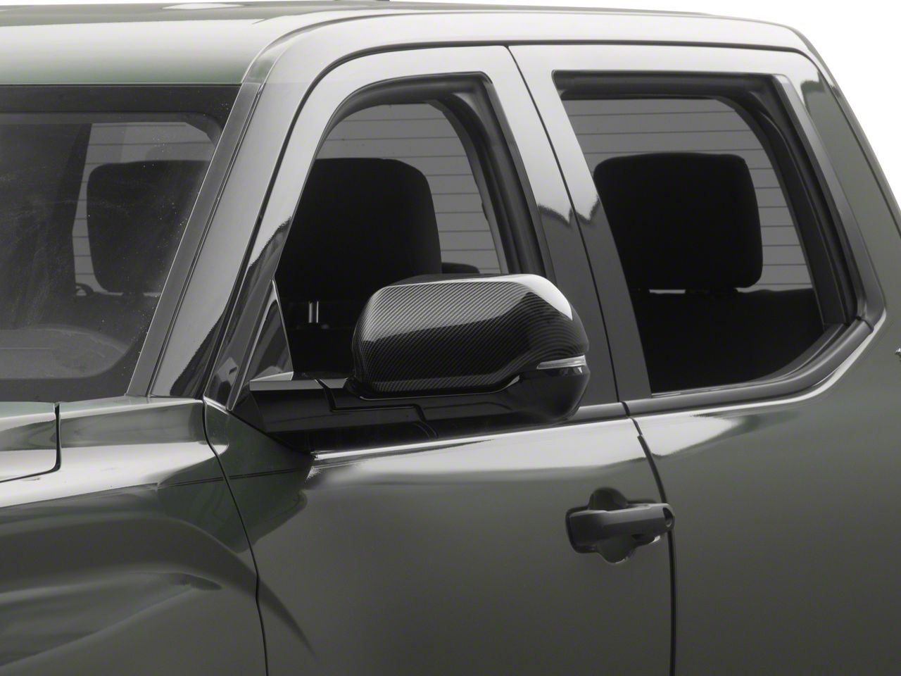 Rugged Styling. A simple and effective way to add rugged styling to the exterior of your 2022-2026 Toyota Tundra is with a set of RedRock Mirror Covers that feature a carbon fiber appearance. These great looking, Gloss Black Carbon Fiber Style Mirror Covers are an inexpensive way to upgrade the appearance of your exterior and they perfectly match RedRock's complete line of other gloss black carbon fiber exterior styling parts.