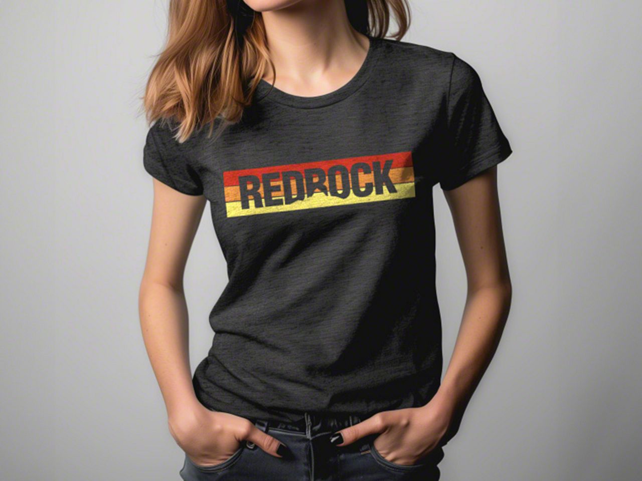 RedRock Appreciation. A magnificent way to show your appreciation for the RedRock brand is with this RedRock Tri-Color T-Shirt. With the stoic "REDROCK" written across the center with its trademark red, orange, yellow background, this shirt is a great way to tell the world where your loyalty lies.