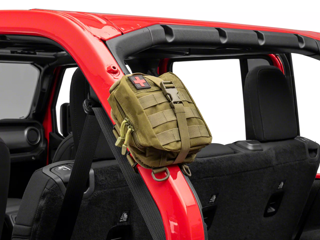 Application. This RedRock 4x4 Roll Bar Mounted First Aid Storage Bag features a universal design so it can be installed on any make or model of vehicle equipped with a roll bar. Sold individually. Please note that no first aid supplies are included, bag ships empty.