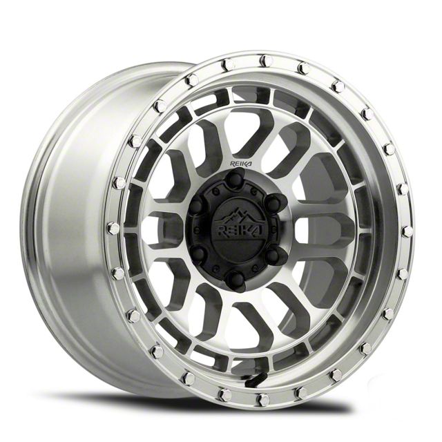 Reika R35 Rambler Machined Clear 6-Lug Wheel; 17x8.5; 0mm Offset. The Reika R35 Rambler Machined Clear 6-Lug Wheel; 17x8.5; 0mm Offset features a sleek and modern design that enhances the overall aesthetic of any vehicle. Its brushed gunmetal finish adds a touch of sophistication and complements various vehicle styles. This wheel's premium construction ensures durability and a robust appearance.