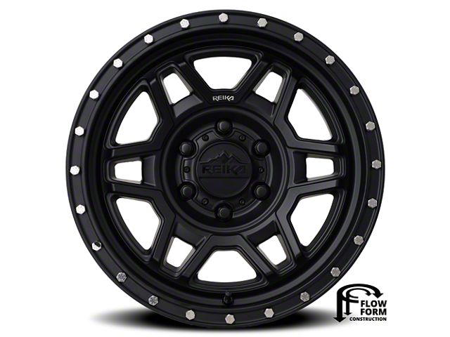 This 17x8.5 Reika R40 Trooper Satin Black 6-Lug Wheel; 17x8.5; 0mm Offset is completed in a high-quality satin black finish that will be the envy of everyone. For added protection and looks, there is a clear coat designed to handle whatever the road, or beyond, throws at it.