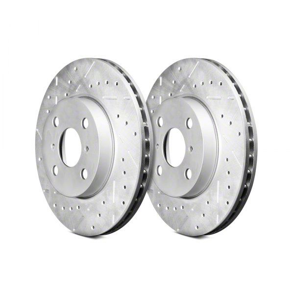 Description. 2005-2015 Toyota Tacoma Front Brake Rotors. Crossdrilled, slotted, and precision machined to provide tight tolerances for improved brake functionality, these rotors offer increased resistance to fade, improved surface contact area with the brake pads, and improved heat management of the brake system. Where the crossdrilled holes allow for greater airflow and dust management and the slots allow for washing away debris, the GEOMET coating protects the rotors from corrosion. If you're looking for a simple but worthy upgrade of your brake system, these rotors will definitely deliver on your expectations.