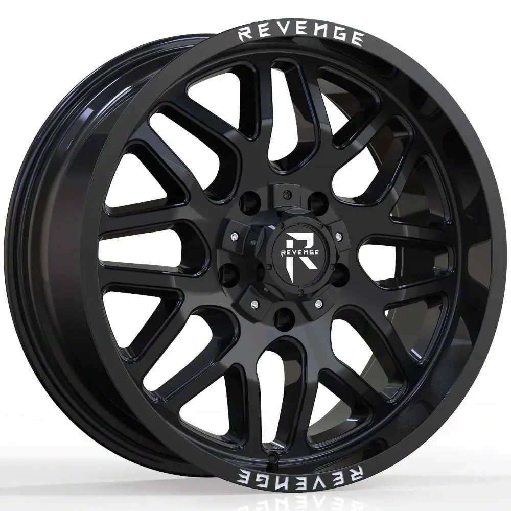 The 20x9 Revenge Off-Road Wheels RV-206 Gloss Black 6-Lug Wheel; 20x9; 0mm Offset is completed in a high-quality gloss black finish that will make others green with envy. For added protection and good looks, this wheel features a durable clear coat that can withstand the hazards of daily driving.