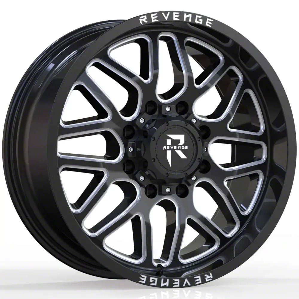 Revenge Off-Road Wheels RV-206 Black and Milled Wheel; 20x12. The Revenge Off-Road Wheels RV-206 Black and Milled Wheel offers a striking balance of style and refinement. Its unique design accentuates the vehicle's aesthetic, while the premium construction underscores its robust nature. This wheel is a perfect choice for those seeking both elegance and a strong visual statement.