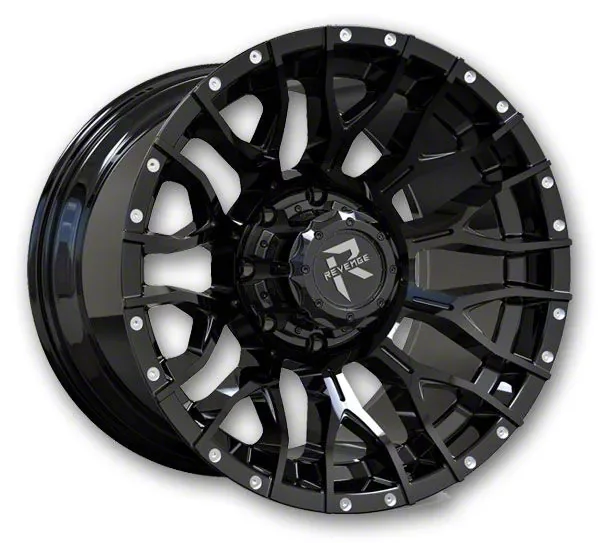 Revenge Off-Road Wheels RV-201 Gloss Black with Dots Wheel; 20x10. The Revenge Off-Road Wheels RV-201 Gloss Black with Dots Wheel offers a striking balance of style and refinement. Its unique design accentuates the vehicle's aesthetic, while the premium construction underscores its robust nature. This wheel is a perfect choice for those seeking both elegance and a strong visual statement.