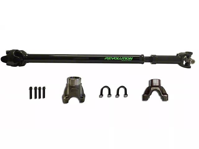 Heavy-Duty Front Driveshaft Upgrade. The Revolution Gear & Axle 1310 CV Front Driveshaft with Pinion Yoke and T-Case Yoke delivers superior strength and durability over factory units for lifted Jeep Wrangler JKs. Engineered to handle larger tires and more demanding off-road conditions, this driveshaft ensures smooth, reliable performance.