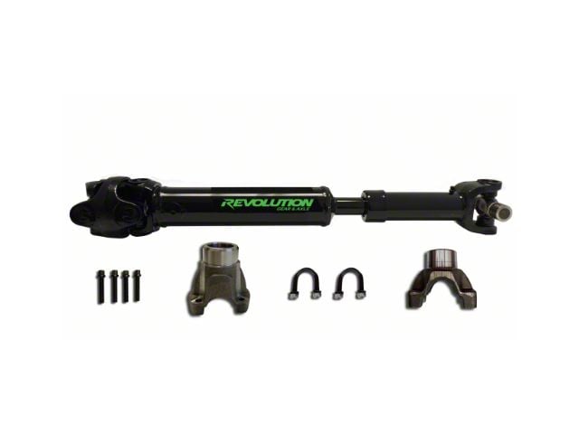 Description. USA Made Premium Rear JK 1310 CV Driveshaft by Revolution Gear and Axle. This pinion yoke style driveshaft fits 2 Door 2007-18 JK Rubicon and Non Rubicon models and will work with up to 37 Inch tires.