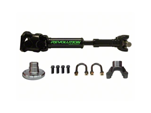 Description. USA Made Premium Rear JK 1350 CV Driveshaft by Revolution Gear and Axle. This pinion yoke style driveshaft fits 2 Door 2007-18 JK Rubicon and Non Rubicon models and will work with up to 42 Inch tires.