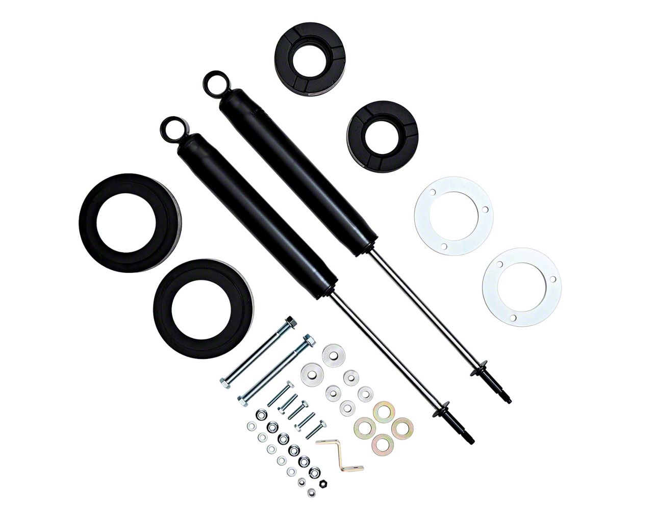 Construction and Appearance. Designed to maintain factory ride quality, this suspension lift kit ensures a smooth and comfortable ride while providing the necessary lift for off-road adventures. Its robust construction guarantees long-lasting performance and reliability.