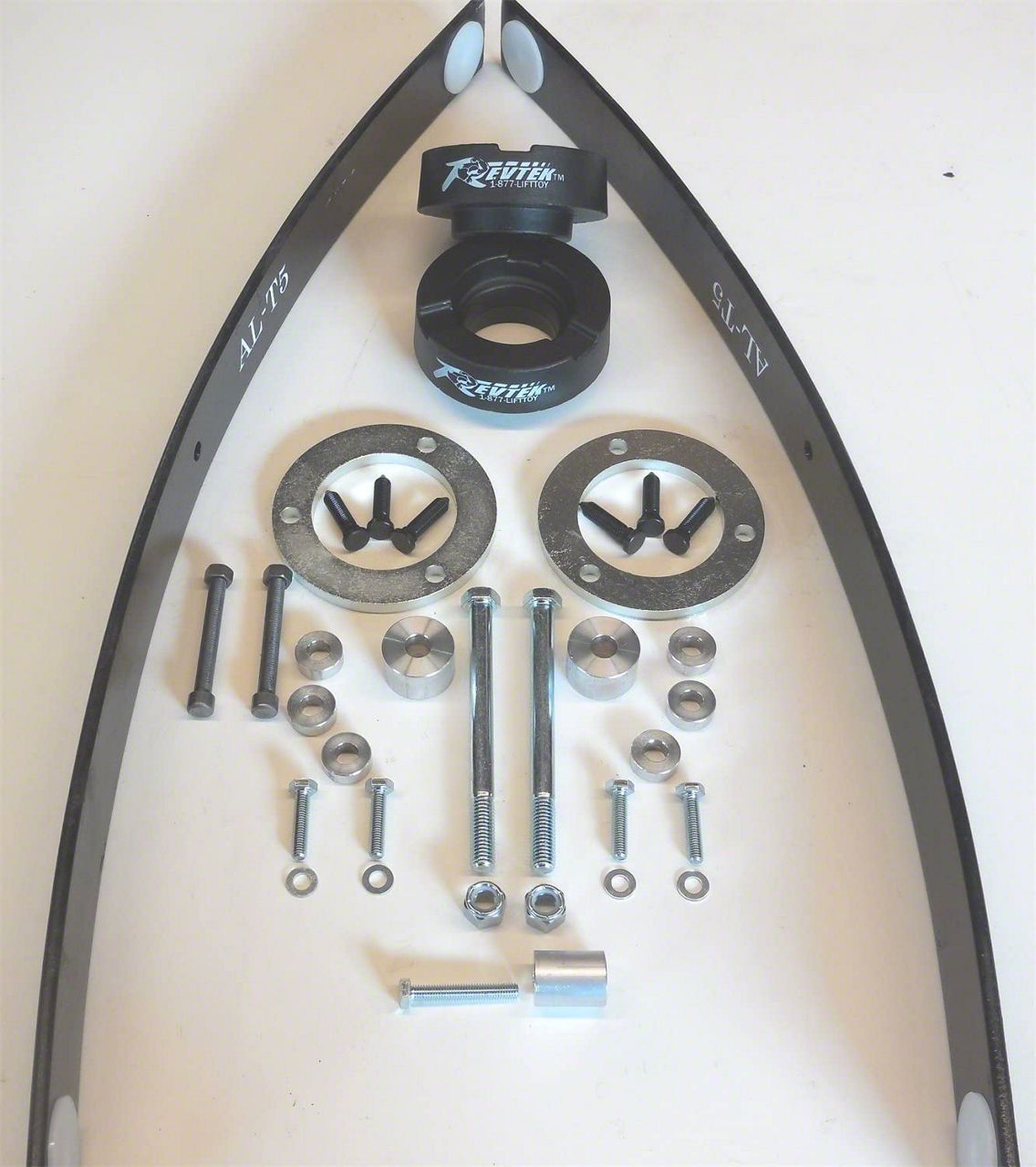 Allows for up to 285 tires mounted on 8 inch wide wheels with a 4.5 inch backspace. Utilizes OEM shocks/struts. Easy install rear add-a-leaf that maintains factory ride quality.