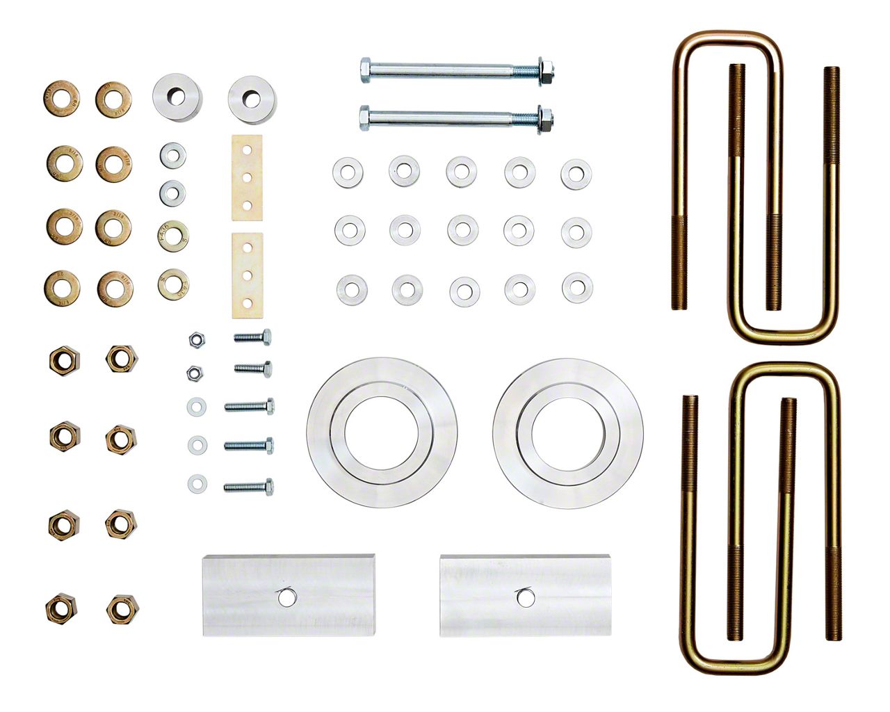 Contents. There are preload spacer, top out extenders, skid plates, 1.25-inch rear lift blocks, U-bolts and installation hardware. Everything is made in the USA.