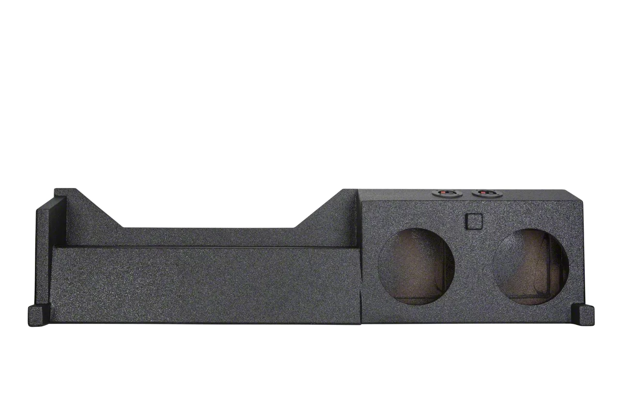 Construction and Appearance. This enclosure is built from heavy-duty MDF (medium-density fiberboard) for rigidity and acoustic integrity, then finished in a rugged poly coating that resists moisture and wear. The exterior has a sleek, textured black finish that blends discreetly with the vehicle's interior while offering long-lasting durability.