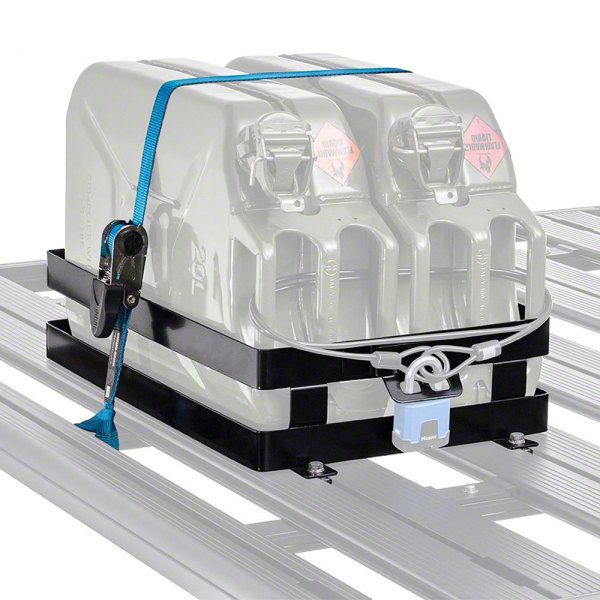 Outdoor Adventure Convenience. Check out the Rhino-Rack Double Horizontal Jerry Can Holder – a huge help for your off-road adventures. This rugged Jerry Can Holder is designed to carry two Jerry Cans horizontally, optimizing rooftop storage space and ensuring you're well-prepared for any journey.