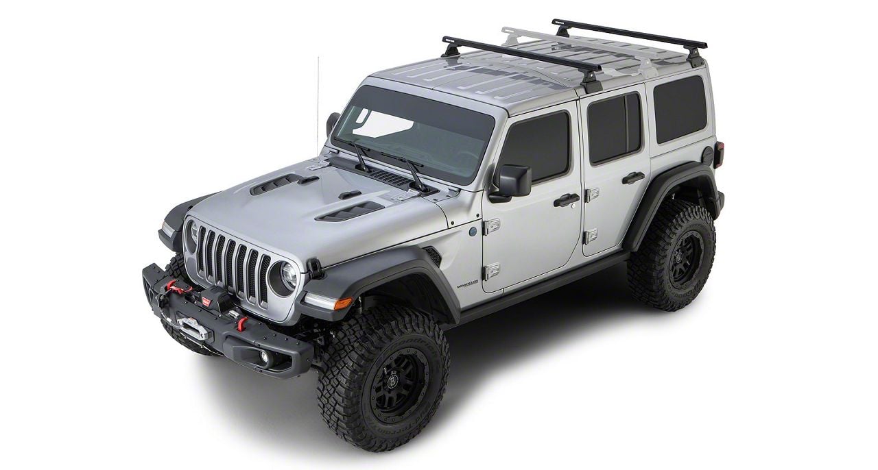 Application. The Rhino-Rack Heavy Duty RLT600 2-Bar Backbone Roof Rack in Black fits all 2018 to 2026 Jeep Wrangler JL 4-Door with models hardtops.