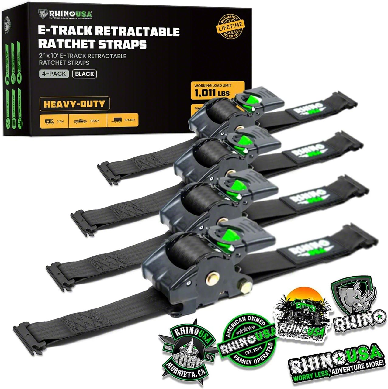 Rhino USA 2-Inch x 10-Foot Retractable E-Track Ratchet Strap Kit; 4-Pack; Black