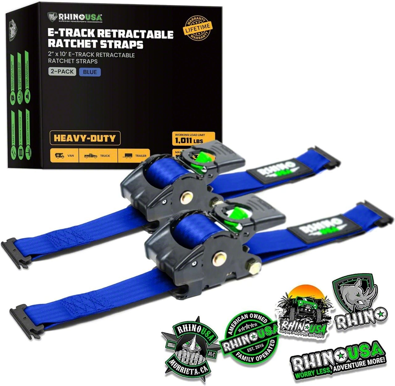 The Rhino USA E-Track Retractable Ratchet Straps are the ultimate tie-down solution for enclosed trailers, flatbeds, pickups, and more. Featuring a one-click auto-retract mechanism, these straps eliminate messy excess webbing and keep your load secure. Built with premium materials and designed for E-Track compatibility, they combine convenience, durability, and Rhino Tough performance.