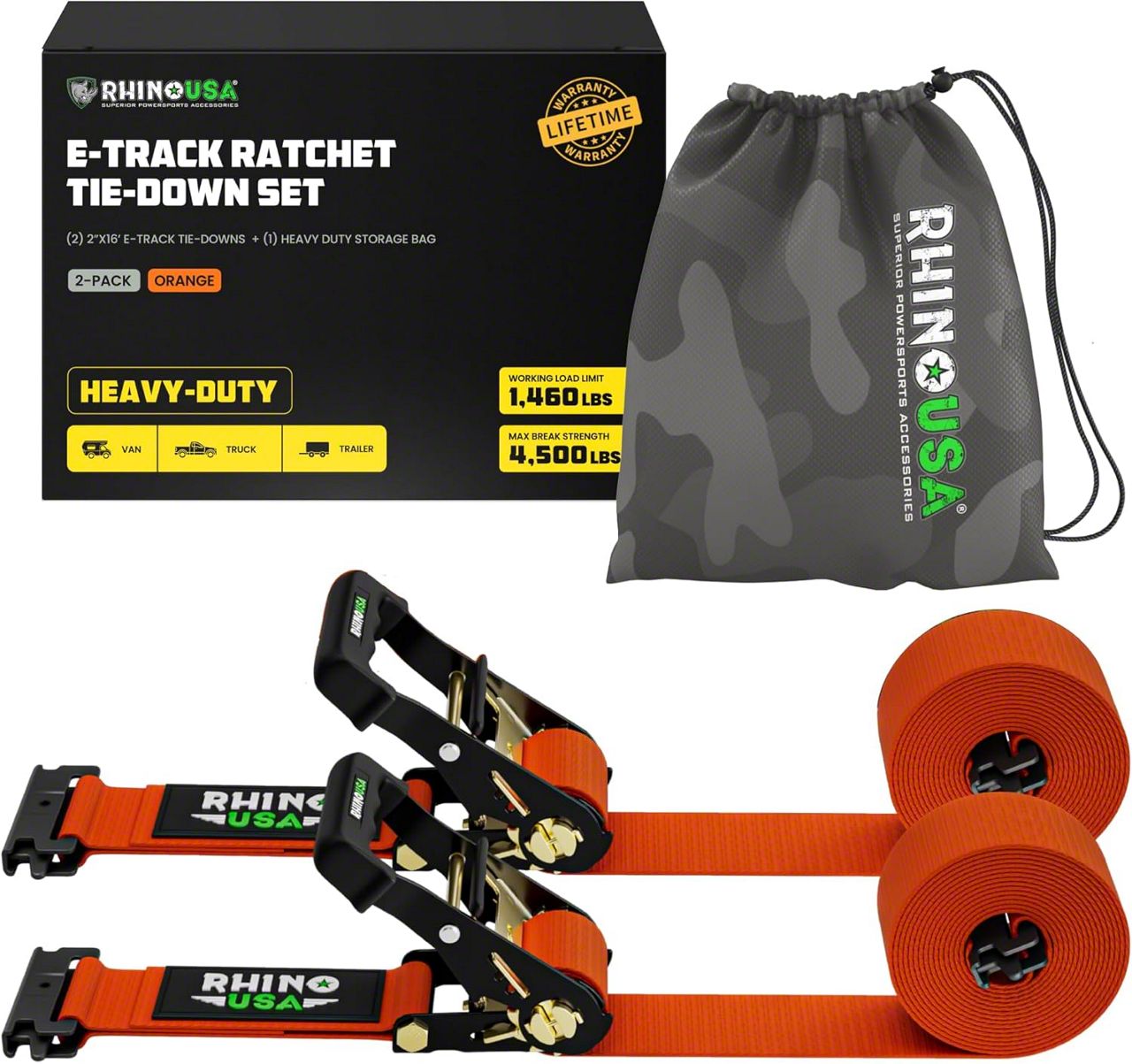 Rhino USA 2-Inch x 16-Foot E-Track Ratchet Strap Kit; 2-Pack; Orange