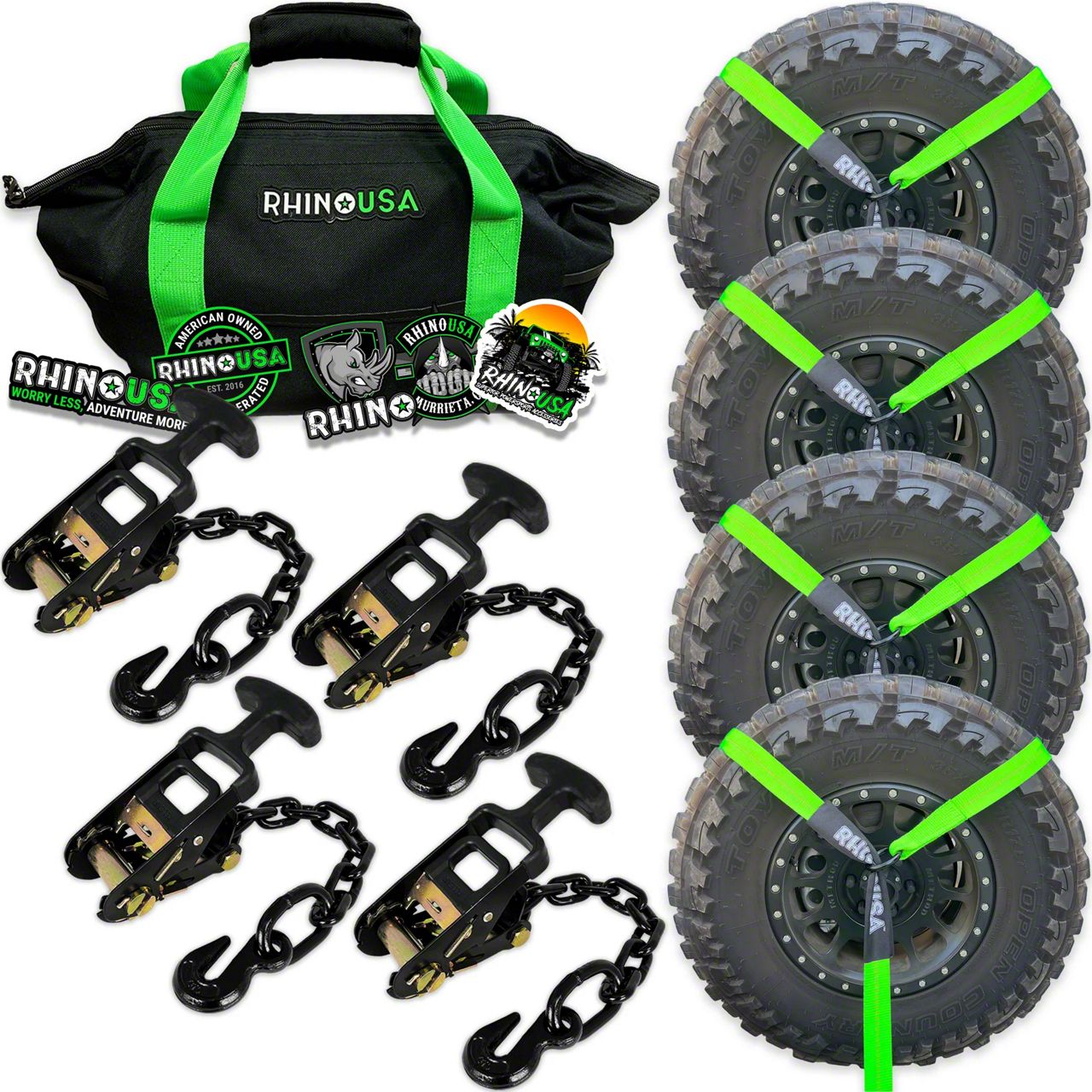 Rhino USA Car Tie-Down Lasso Strap Kit with J-Hooks; Green