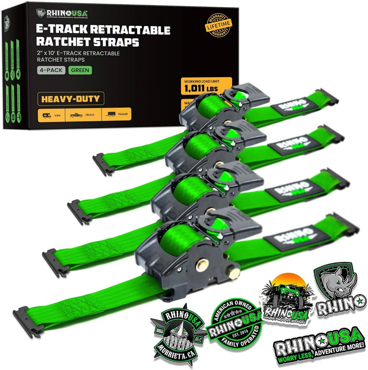 The Rhino USA E-Track Retractable Ratchet Straps are the ultimate tie-down solution for enclosed trailers, flatbeds, pickups, and more. Featuring a one-click auto-retract mechanism, these straps eliminate messy excess webbing and keep your load secure. Built with premium materials and designed for E-Track compatibility, they combine convenience, durability, and Rhino Tough performance.