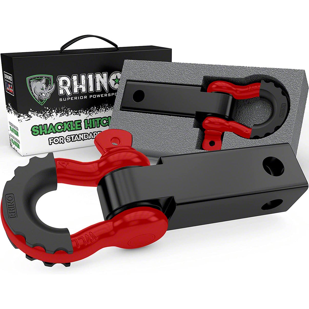 Durable and Secure Hitch Shackle. The Rhino USA 2-Inch Receiver Hitch Shackle with D-Ring is built to provide a strong and secure connection for towing or recovery operations. Designed for straightforward installation, this hitch shackle ensures safe and reliable performance for heavy-duty tasks.