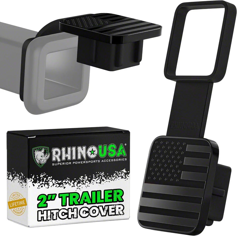 Rhino USA 2-Inch American Flag Hitch Cover; Black (Universal; Some Adaptation May Be Required)