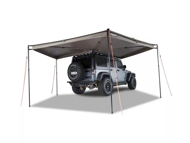 Impressive Outdoor Awning. With Rhino-Rack's Batwing Awning; Left Hand, you'll look forward to taking a break during your extreme off-roading adventures. This awning mounts to the left side of your vehicle and is designed to provide up to 188-square Feet of shade. It also boasts a UPF 50+ rating, providing maximum sun protection during those hot summer days.