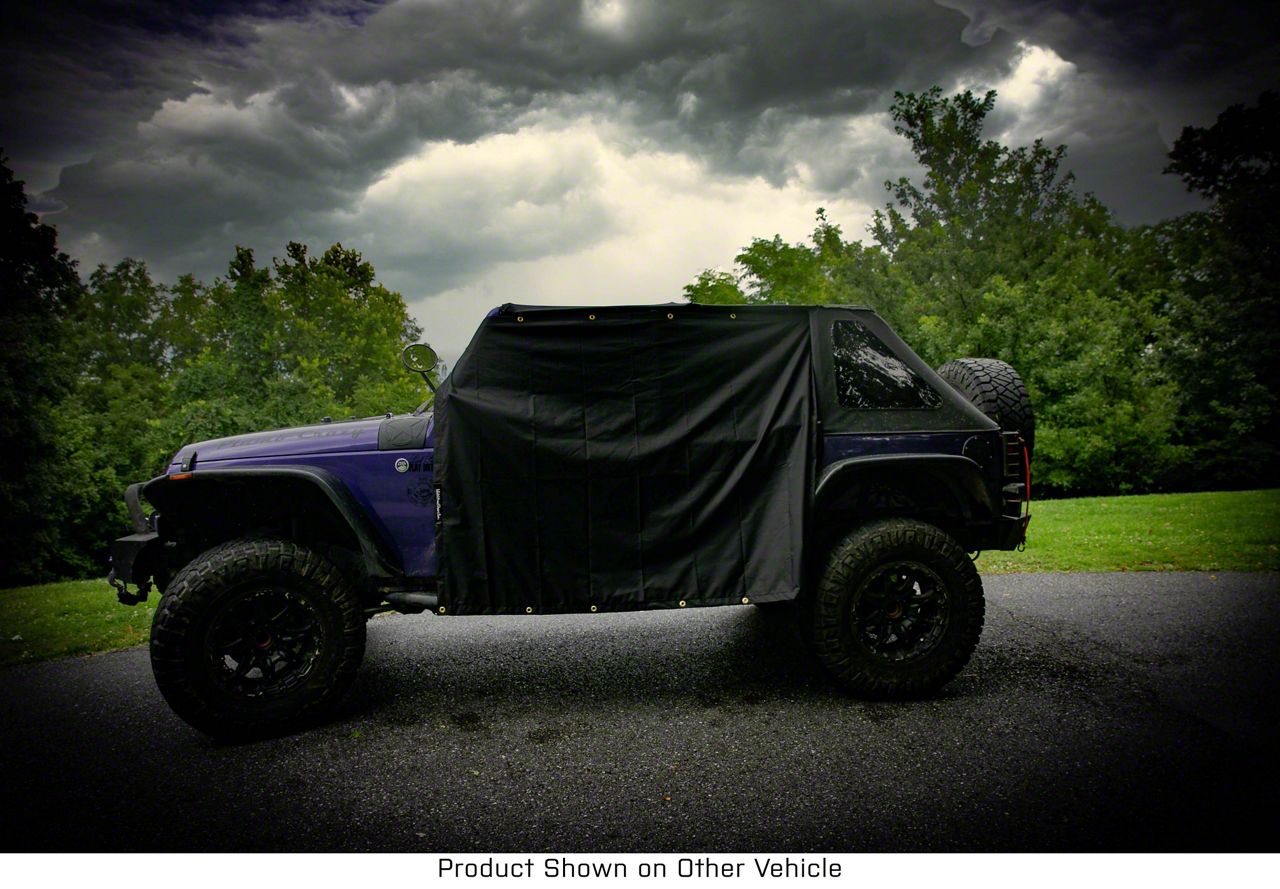 Keep Dry in a Pinch. When your Jeep's doors are off and the sky turns an ominous color, no need to panic. These Four Door Rain Curtains; Black will keep the interior of your Gladiator dry in the event of the out-of-nowhere rainstorm.