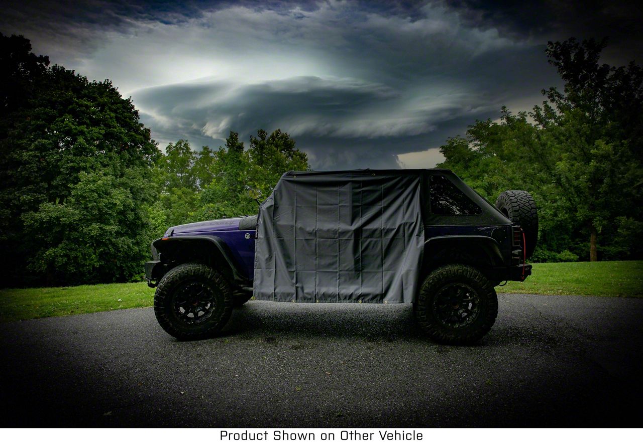 Keep Dry in a Pinch. When your Jeep's doors are off and the sky turns an ominous color, no need to panic. These Four Door Rain Curtains; Gray will keep the interior of your Gladiator dry in the event of the out-of-nowhere rainstorm.