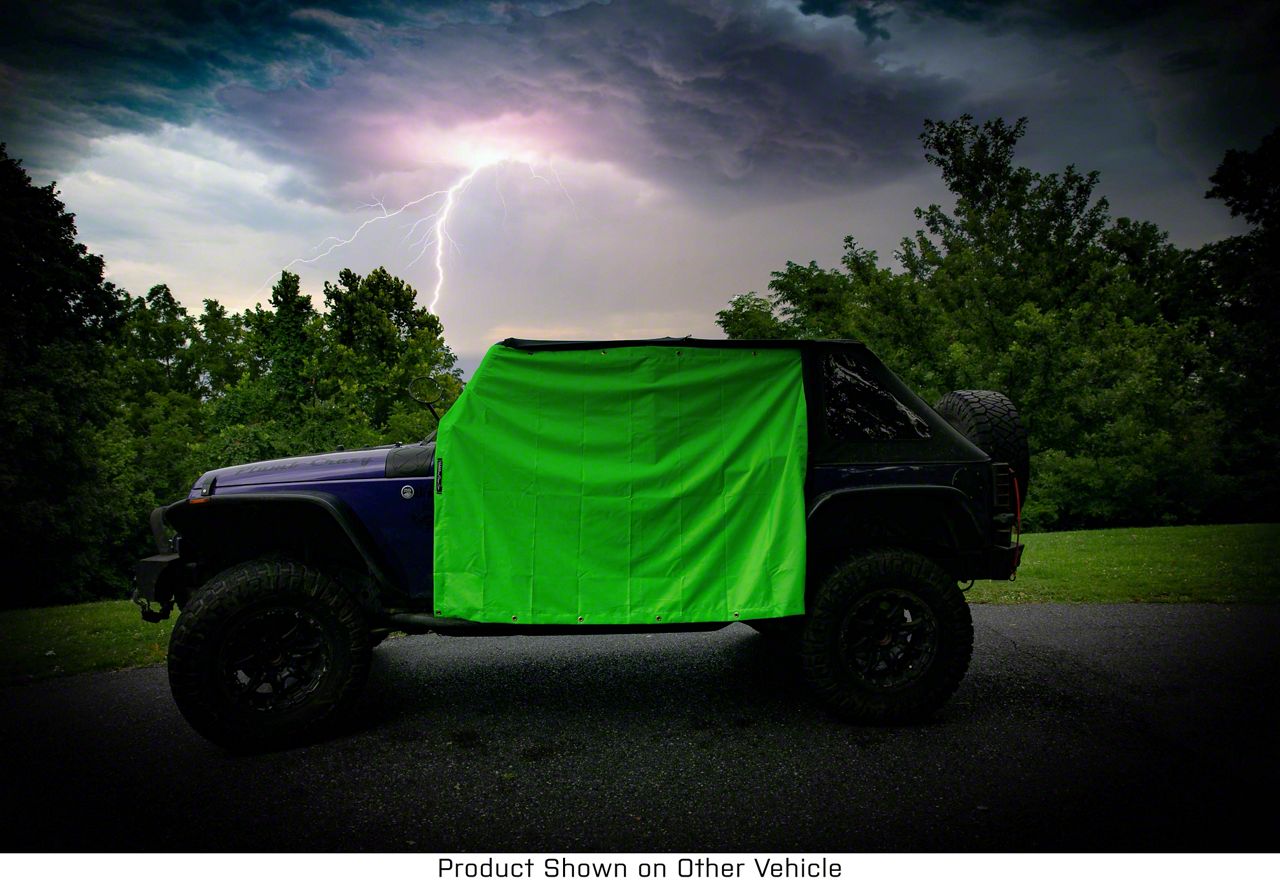 Keep Dry in a Pinch. When your Jeep's doors are off and the sky turns an ominous color, no need to panic. These Four Door Rain Curtains; Lime Green will keep the interior of your Gladiator dry in the event of the out-of-nowhere rainstorm.